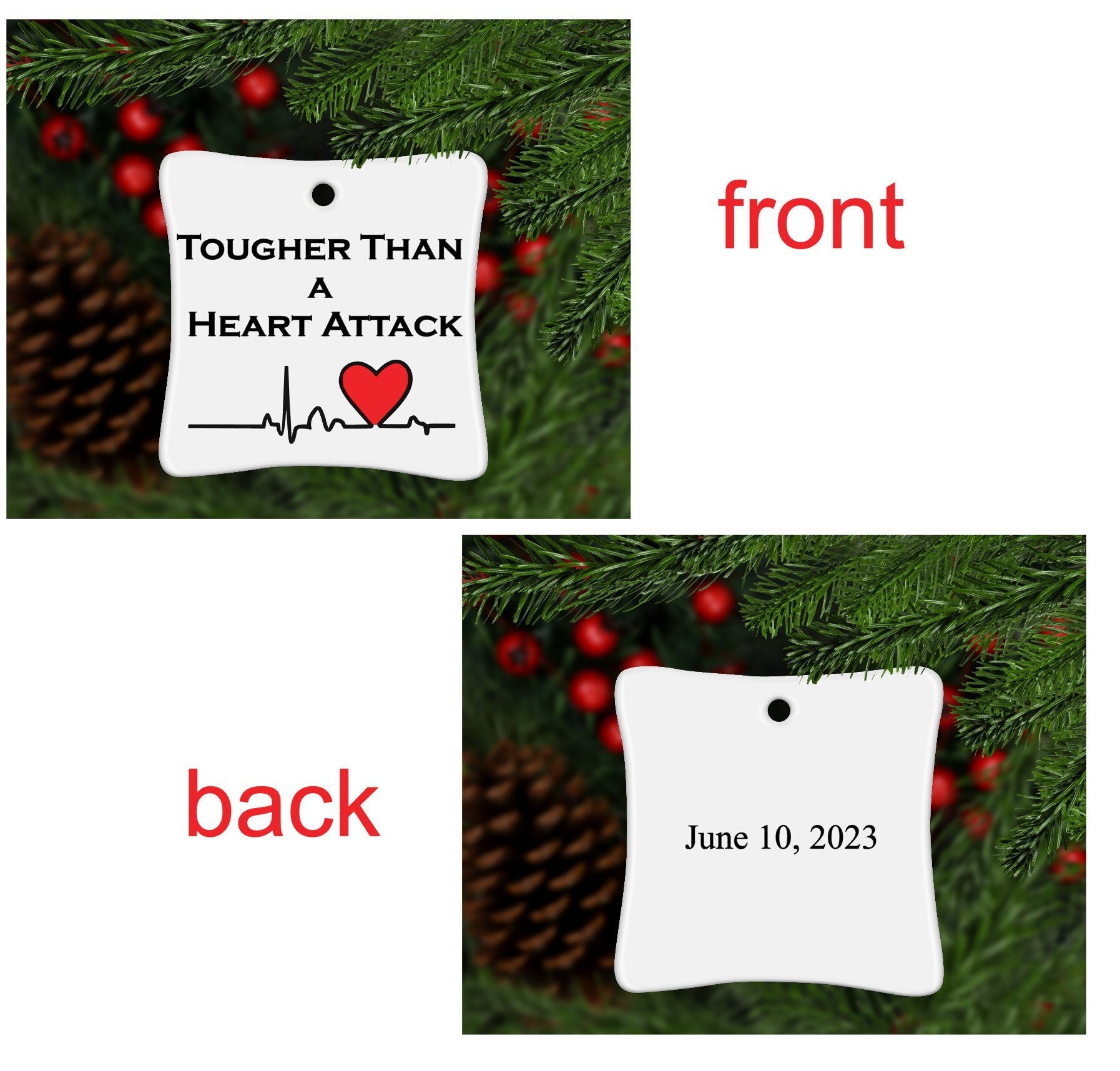 Tougher Than a Heart Attack” Ornament ❤️💓
